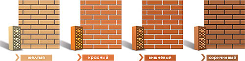 Продукція СБК має 4 базові кольори: жовтий, червоний, коричневий і вишневий. У кладці можуть використовуватися різні відтінки базових кольорів цегли - наприклад «меланж», це чудове доповнення квітів дозволить підкреслити красу будівель і рішення сміливих дизайнерських ідей. На облицювальну цеглу ціна, пропонована комапнії "Будхаус", приємно здивує потенційних покупців.