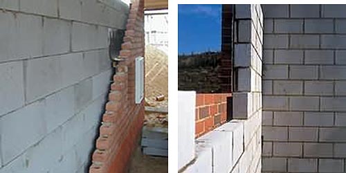Можливість подальшого облицювання цеглою кладки стін з блоків слід передбачити ще на стадії закладки фундаменту – ширина фундаменту повинна дозволяти одночасне спирання блоків і цегли, при цьому звіс кладки в півцеглини не повинен перевищувати 30 мм, повітряний зазор між кладкою з блоків і цегельною кладкою – не менше 30 мм.