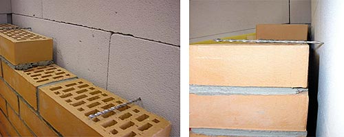 Цеглина і блоки мають бути зв'язані між собою металевими або стеклопластиковими зв'язками. Кількість зв'язків – 4 шт./кв.м. В якості зв'язків можна використовувати: