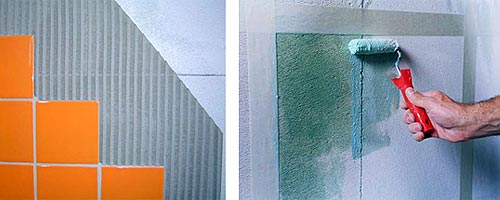При роботі у вологих приміщеннях (ванна, душова кімната, холодні кімнати і тому подібне) потрібно використовувати виготовлені на базі цементу вологостійкі суміші. Поверхню стін потрібно обробити водовідштовхувальним розчином.
